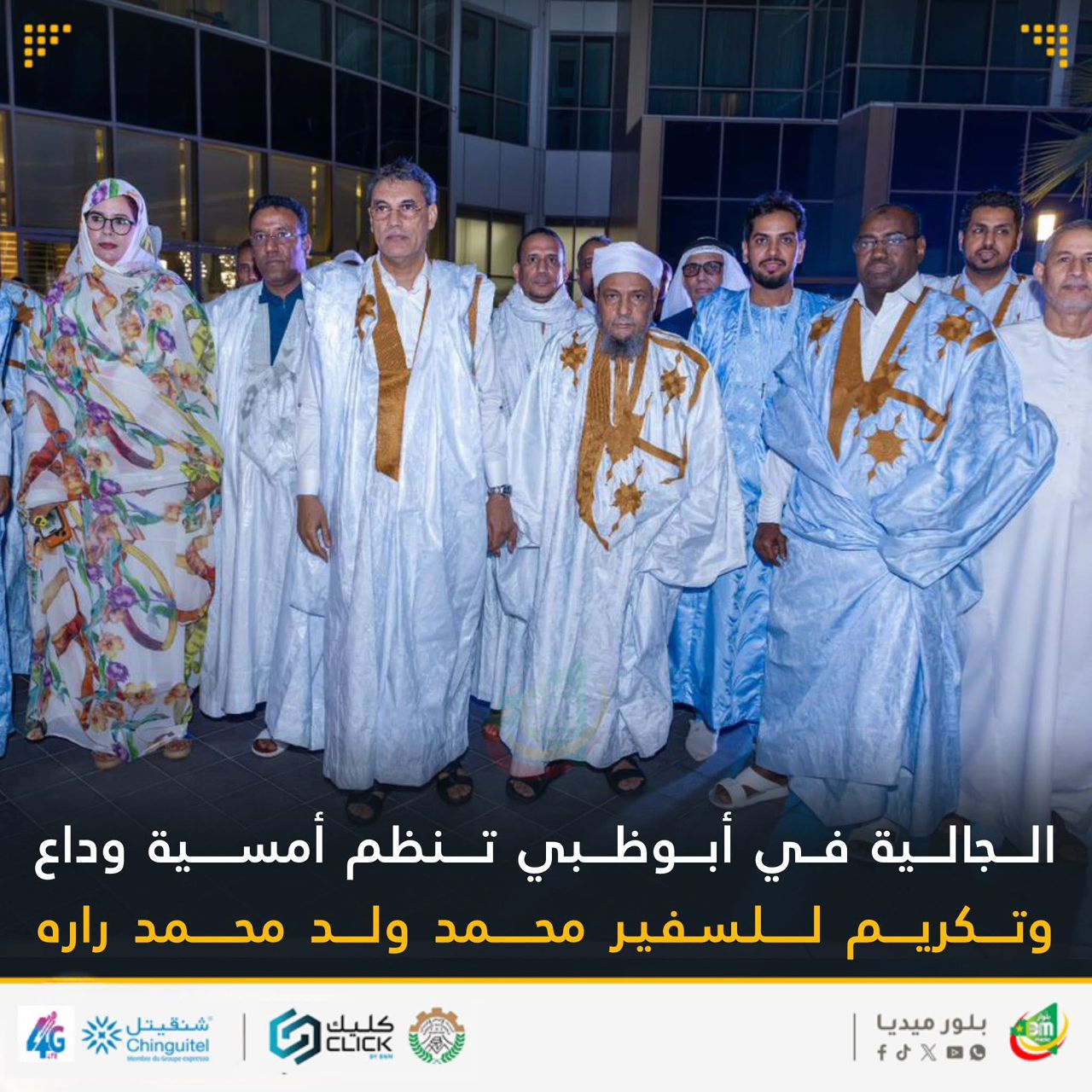 أقامت الجالية الموريتانية في دولة الإمارات العربية المتحدة، مساء السبت، حفلاً تكريميًا مميزًا في أبوظبي احتفاءً باختتام مهمة سعادة السفير محمد ولد أحمد سالم ولد محمد راره الدبلوماسية.